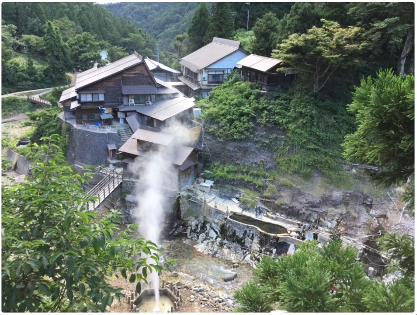 地獄谷野猿公苑から歩いて直ぐのところにある後楽館(こうらくかん)は、1864年に開業した湯宿です。横湯川の河床から湧き出る天然温泉を利用し、数種類の入浴施設があります。