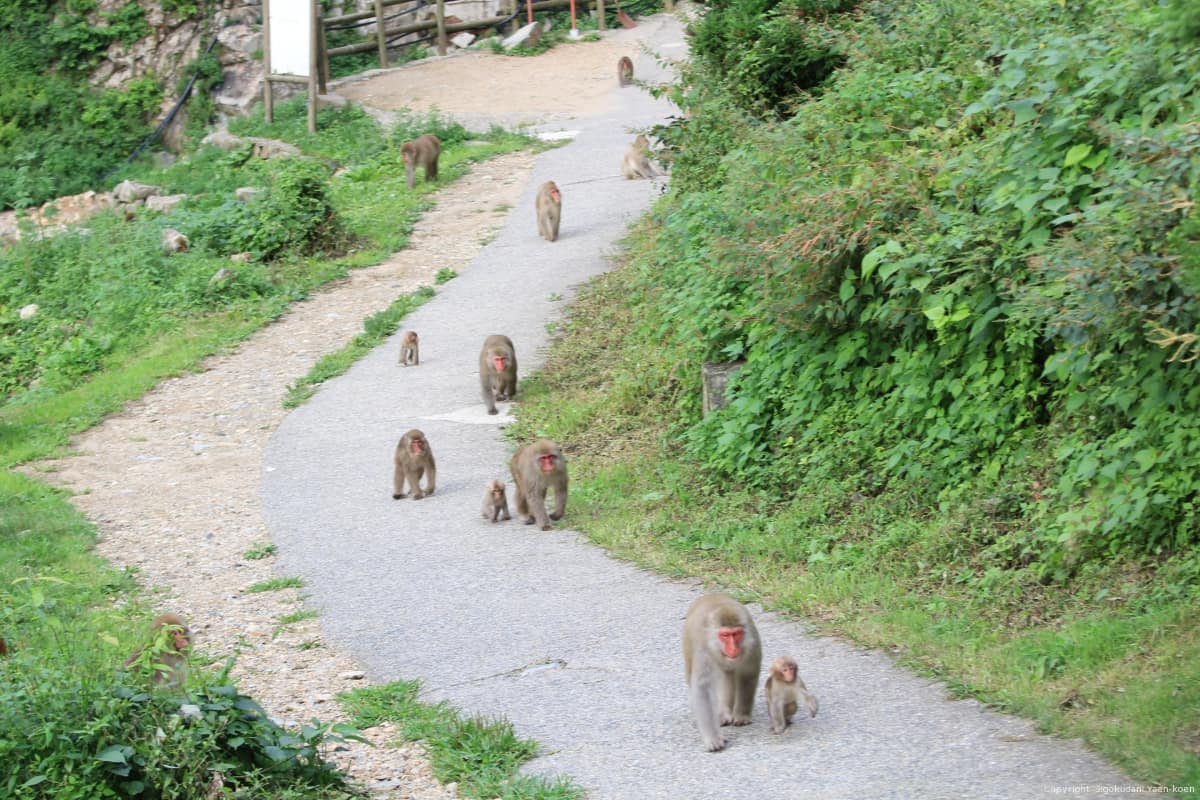 上林温泉からは地獄谷野猿公苑へと続く遊歩道が2キロほど延びています。その道のりは、坂や階段があるものの、歩いて約30分で地獄谷野猿公苑へ到着します。