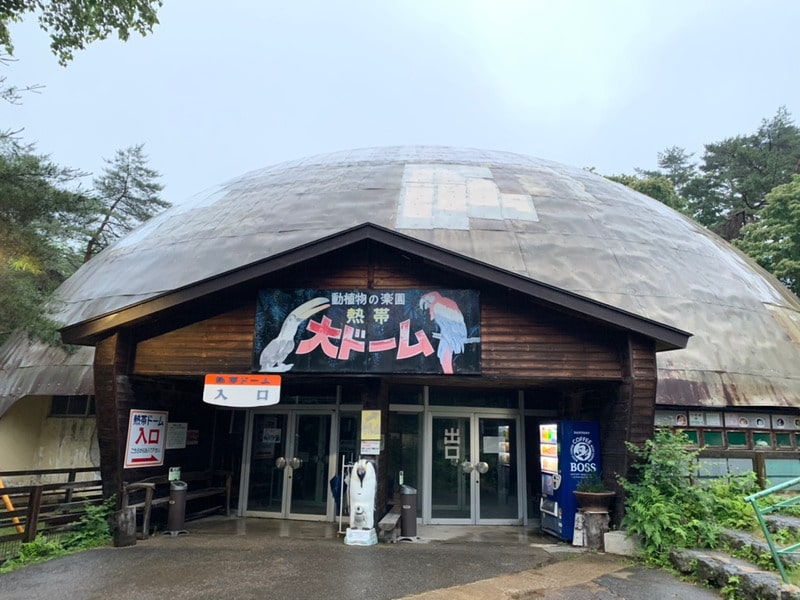 施設内は熱帯ドームを中心に、屋外展示、昆虫館の3ゾーンに分かれています。高さ15メートルのドームの中にはカピバラや巨大なワニ、ナマケモノ、エリマキキツネザル、ヘビなどが暮らし、まるで小さなジャングルのよう。屋外の猿山ではニホンザルのユーモラスな姿を見ることができます。毎年夏期に開催される昆虫展や、動物とのふれあいやエサやり、ヘビとの記念撮影も人気です。