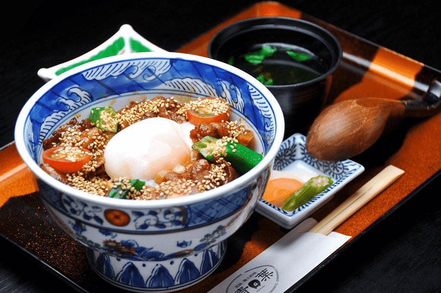 黒豚三枚肉を秘伝のたれで仕上げているので、濃厚なうまみと温泉卵のとろみが口いっぱいに広がります。