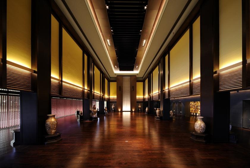 建物の周りに配した池、そして格子によって巧みに内部に取り込まれた光が作り出すさまざまな表情は訪れる人の五感を刺激してくれることでしょう。