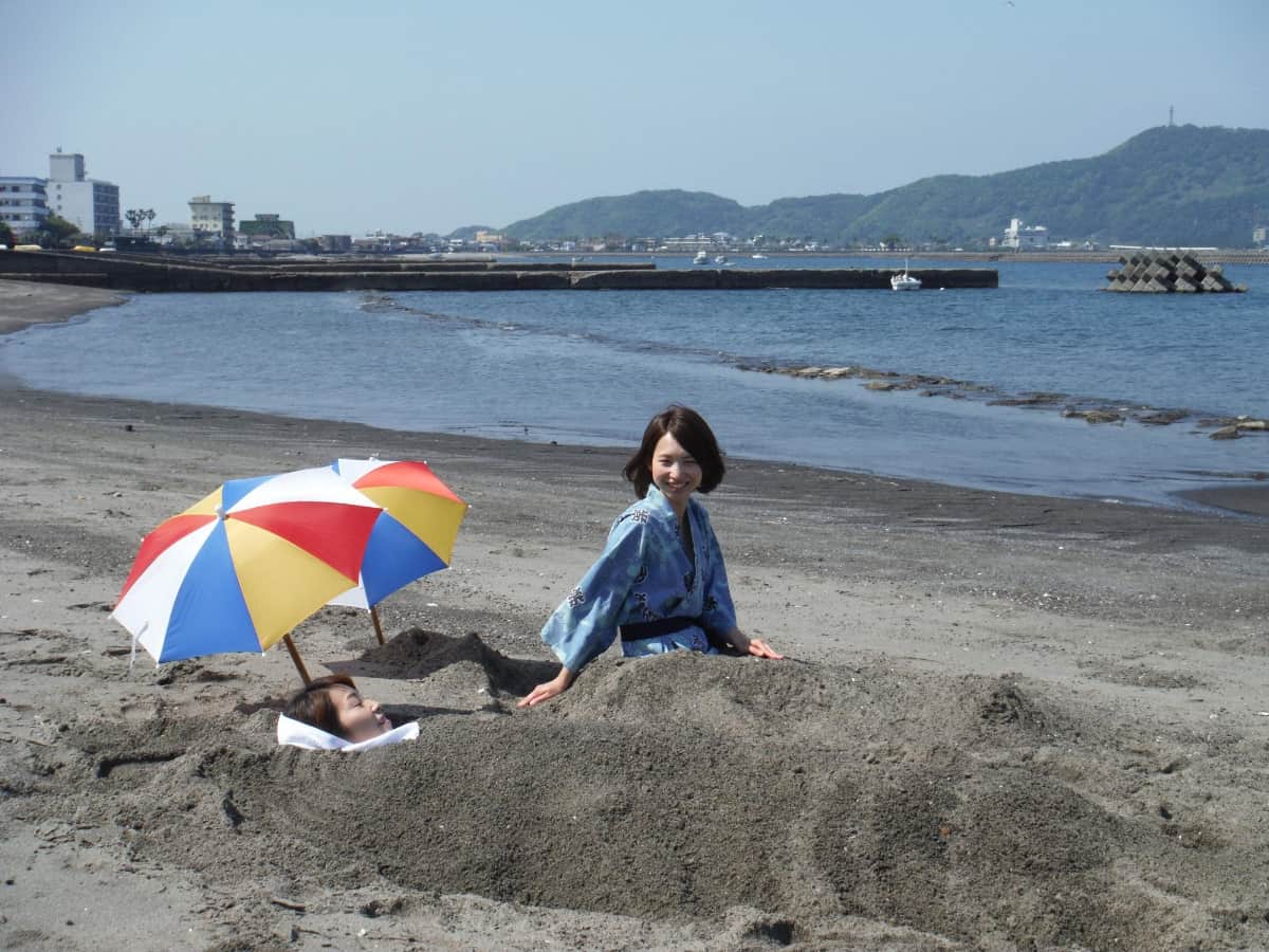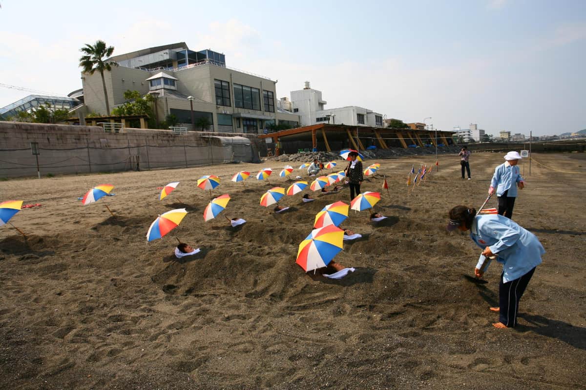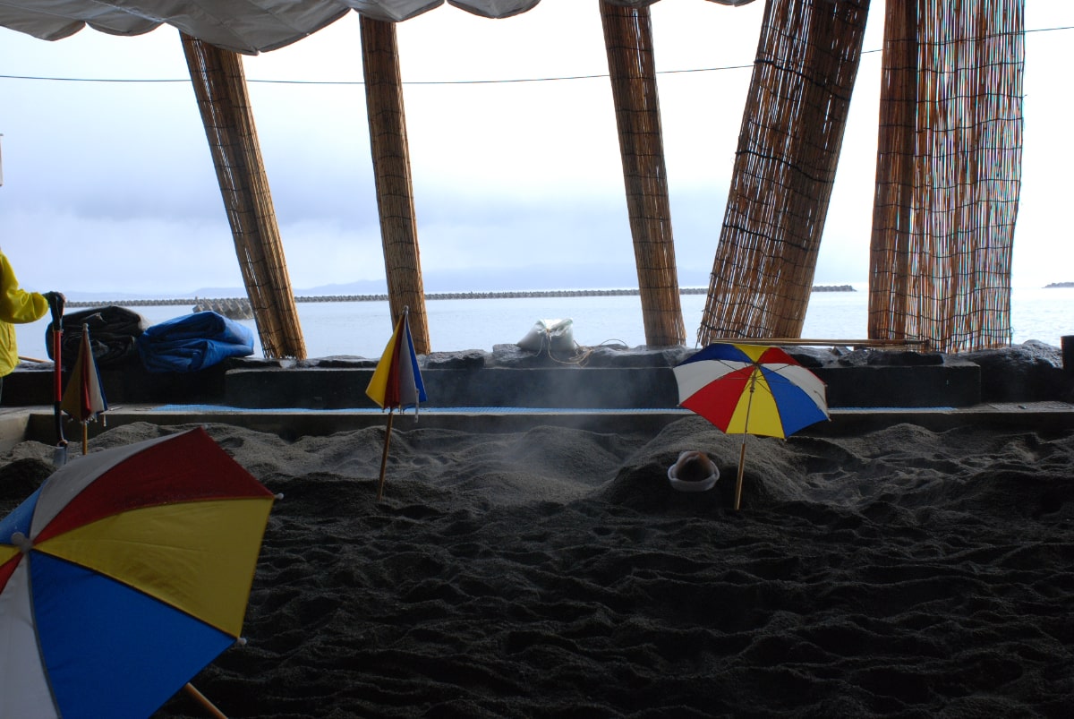 砂むし温泉は世界的にも珍しく、砂の上に横になり、熱い砂を身体の上にかけることで発汗を促します。