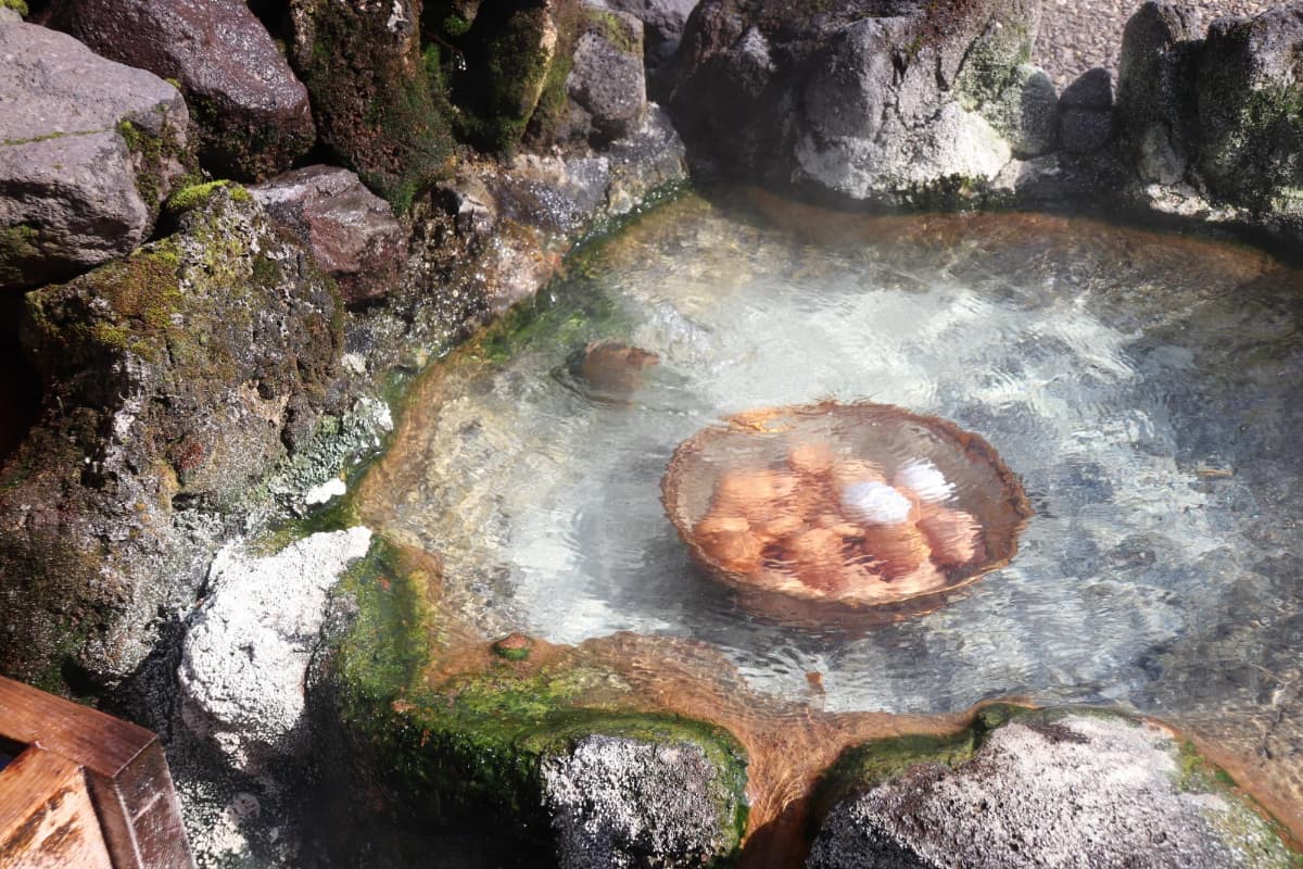 温泉地には必ずあるといってもよい名物の温泉卵ですが、平湯にある「つるや商店」では一風変わった温泉卵が楽しめます。