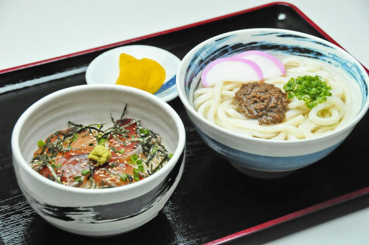 大分県佐伯市の郷土料理である「ブリのあつめし」と「ごまだしうどん」がセットになっています。