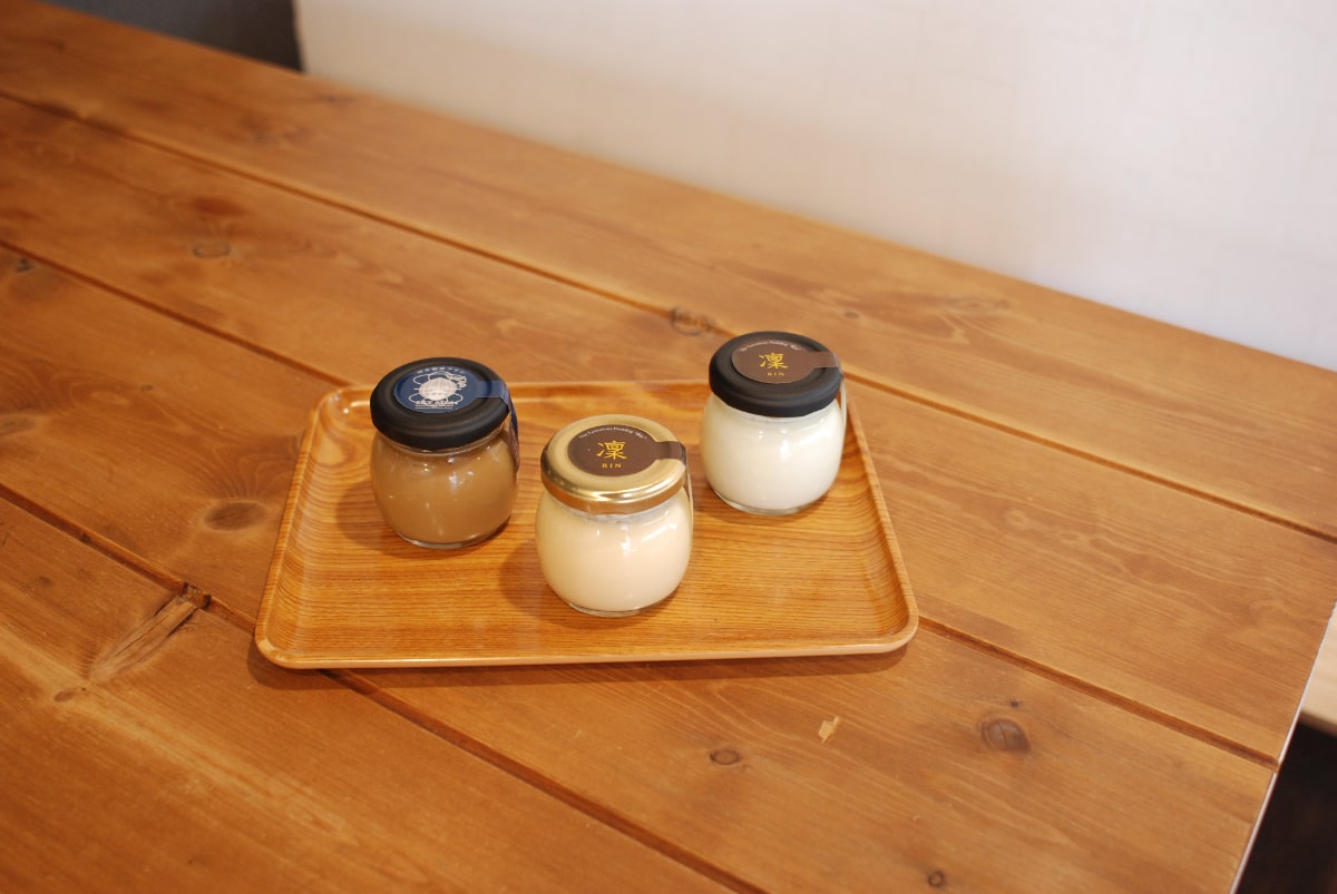 YURARIの「湯布院プリン」(1個 360円~)は、食材の鮮度にこだわり、地元産の卵や牛乳を使って丁寧に作られる無添加プリンです。