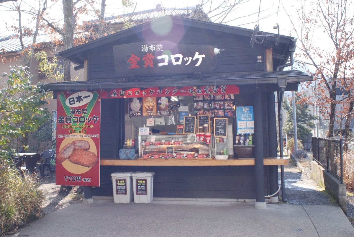 湯布院金賞コロッケの「金賞コロッケ」(1個170円)は、全国コロッケコンクールで金賞を受賞した逸品。