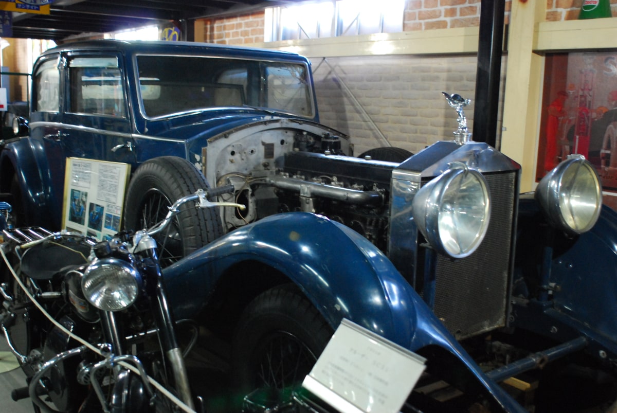 モーターサイクル歴史観ブースには、往年のバイクや名車が200台ほど展示されています。