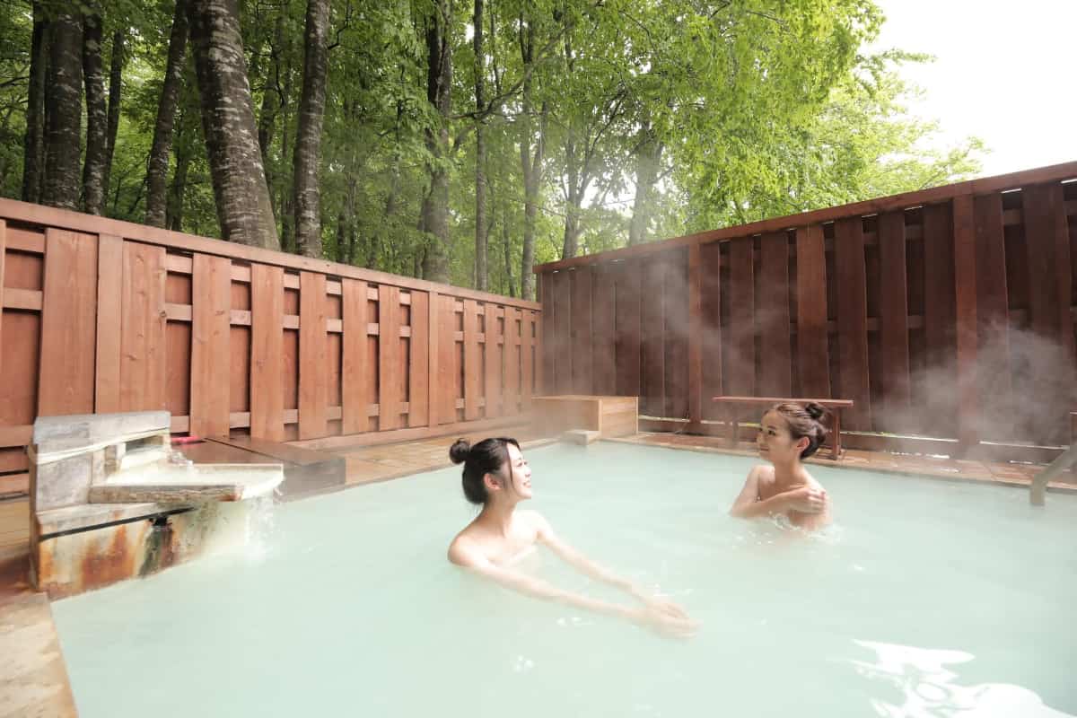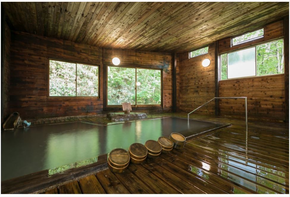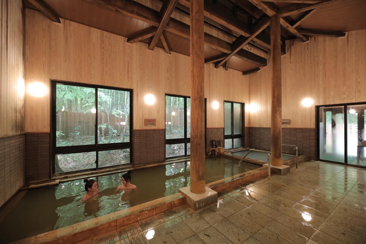 休暇村乳頭温泉郷(入浴料:600円)では2つの源泉からナトリウム炭酸水素塩泉と単純硫黄泉が湧きでており、二種類の湯質を大浴場・小浴場・露天風呂が楽しめます。