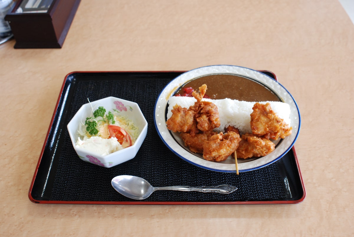 辛すぎない風味のある美味しいカレールーと、カリカリな衣の唐揚げが相性抜群です。