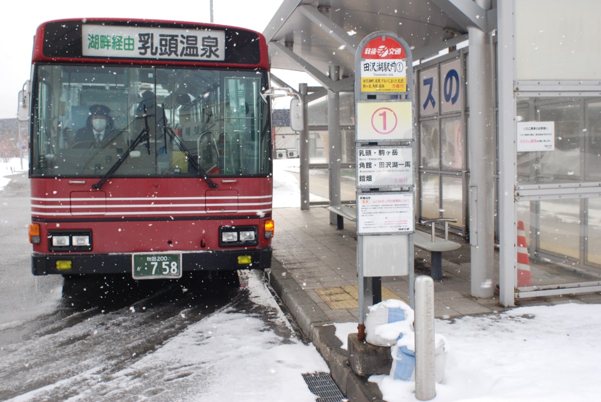 入浴を終えたら「妙乃湯温泉前」よりバスに乗りJR田沢湖駅へ向かいます。