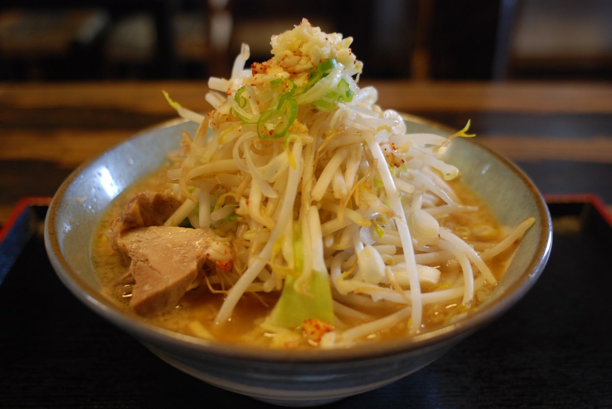 大盛のもやしとにんにくの入ったコクのある豚骨風味の美味しいラーメンは3種の盛り具合を選べますが、一番少ない並盛りでもボリューム満点です。