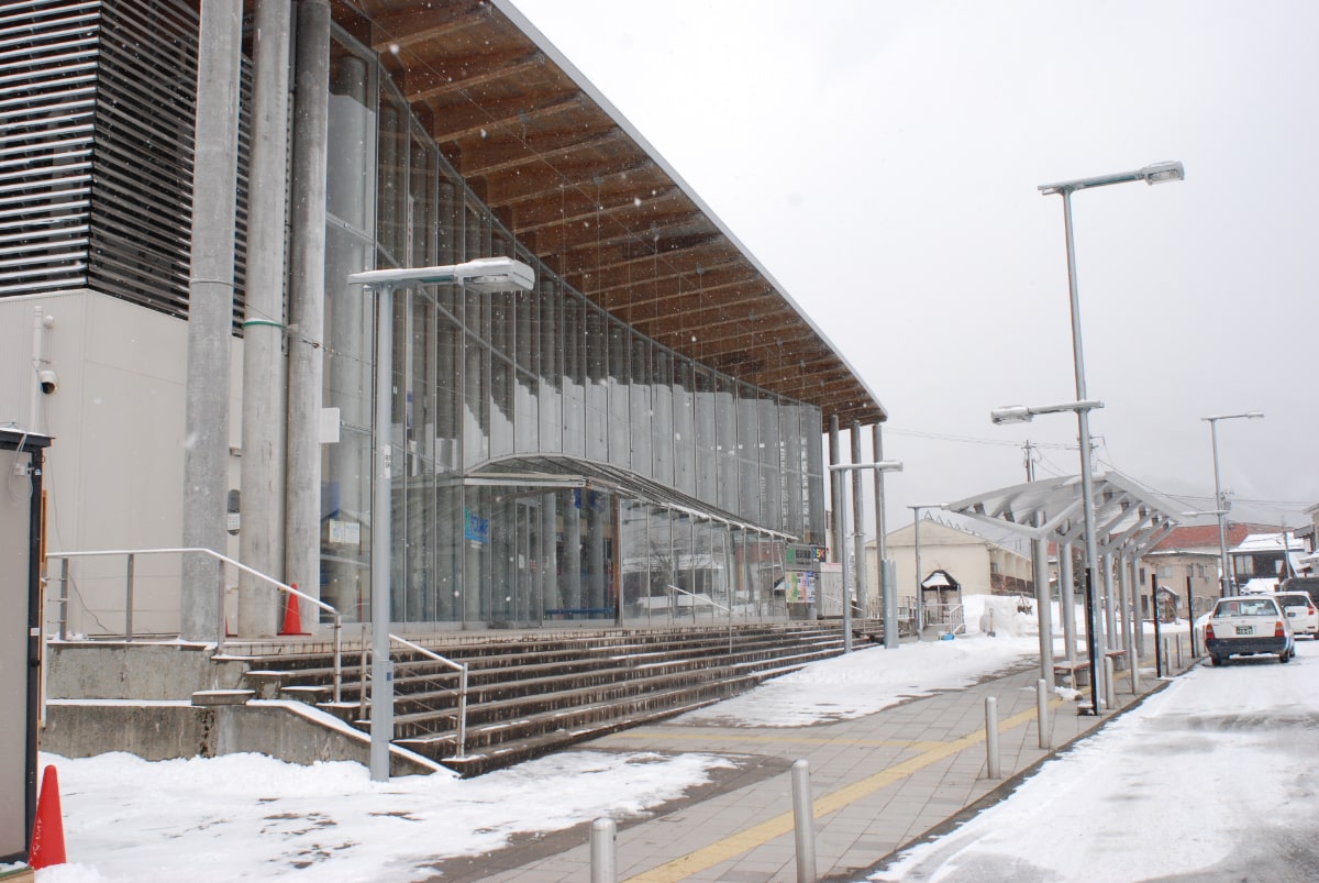 ガラスと木を組み合わせたモダンなデザインが評価され、東北の駅百選に選定されています。