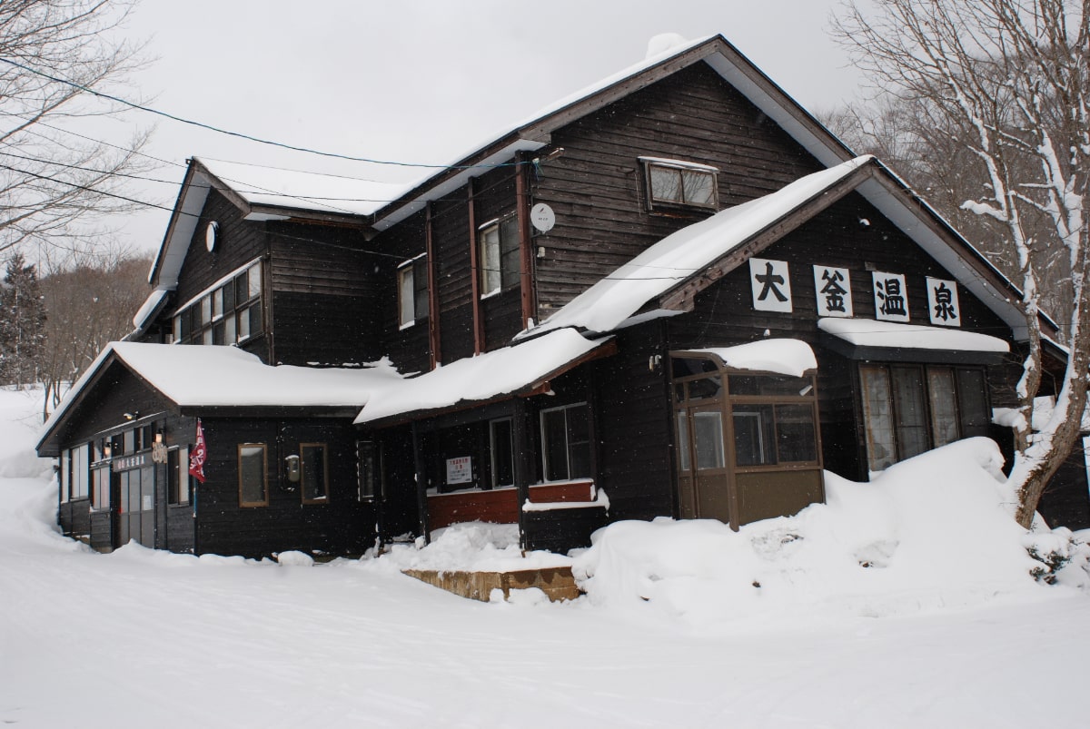 大釜温泉は、木造校舎のイメージを残す、風情ある建物の温泉です。