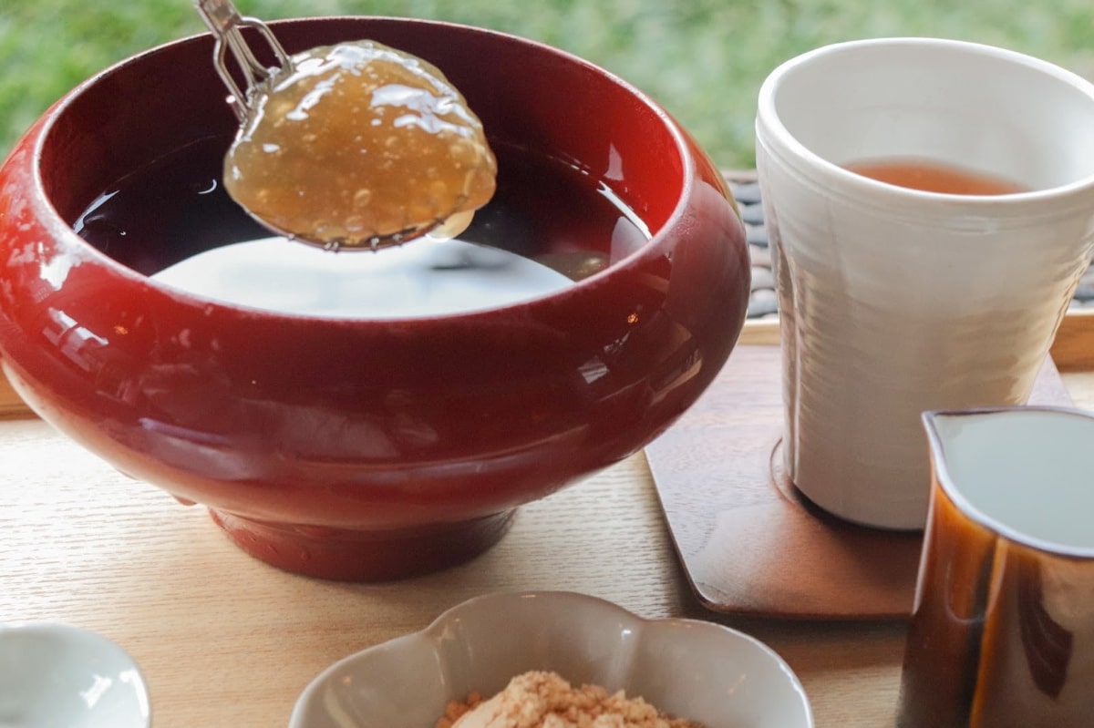 有馬温泉で和スイーツを頂くなら「猪名野茶房」がおすすめです。有馬グランドホテルの1階にあり、お庭を眺めながらお茶タイムが楽しめるお茶屋さんです。