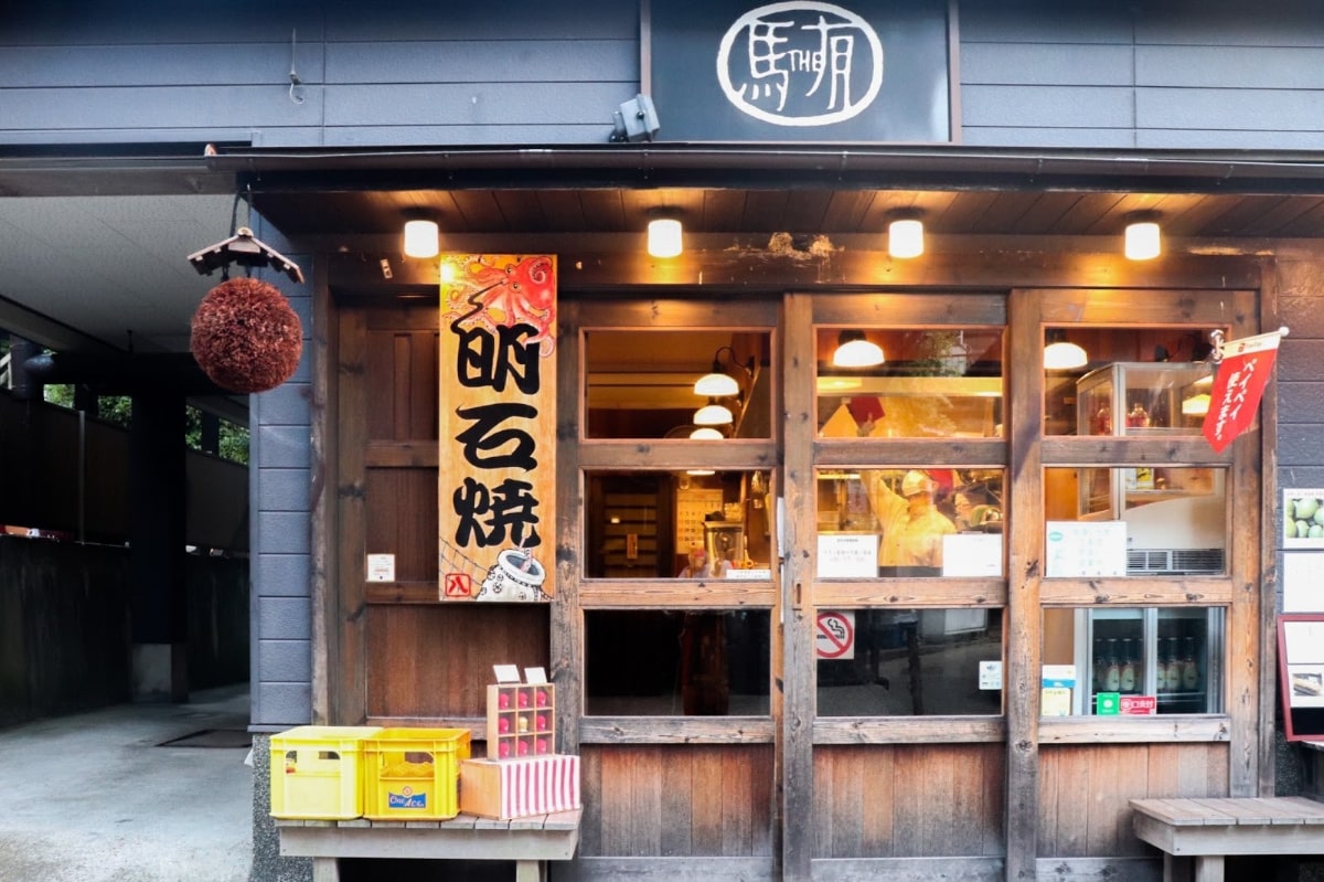 「三ツ森金の湯前店」は、有馬温泉を代表する日帰り温泉の一つ、「金の湯」の前にあります。