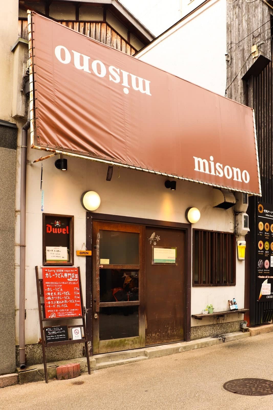 軽めのランチを頂きたい方におすすめなのが名物カレーうどんで人気の「ミソノ」です。昔ながらの洋食レストランのような店構えのミソノは、カレーうどんを専門としたお店です。