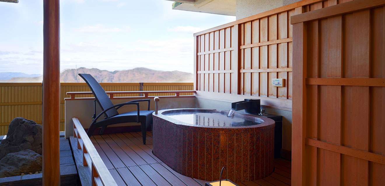 「兵衛向陽閣(ひょうえこうようかく)」は、老舗の風格を随所に感じさせる人気旅館です。自慢の金泉をさまざまな趣向の大浴場・露天風呂で楽しむことができます。大浴場「一の湯」では、大きな一面のガラスの窓から満開の桜を堪能でき、9階庭園にある湯治場風の「三の湯」では庭園の花を間近で見ながらお風呂に浸かれます。また、旬の素材をふんだんに使った会席料理をはじめ、炭火焼会席やバイキングなどの選べる食事は宿泊客から高く評価されています。