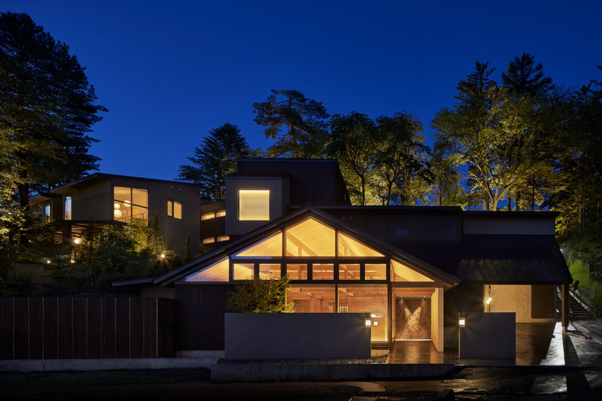 シェフがその土地の食材を使って腕を振るうレストランが主役の宿泊施設「炯- kei -」。和の雰囲気を取り入れたスタイリッシュな建物で、窓で切り取られる紅葉の景色はまるで絵画のよう。大きな窓から紅葉を望めるレストランでは、旬の食材を使った創造溢れる料理を味わうことができます。お風呂は草津温泉でも数少ない白濁の「地蔵源泉(じぞうおんせん)」です。