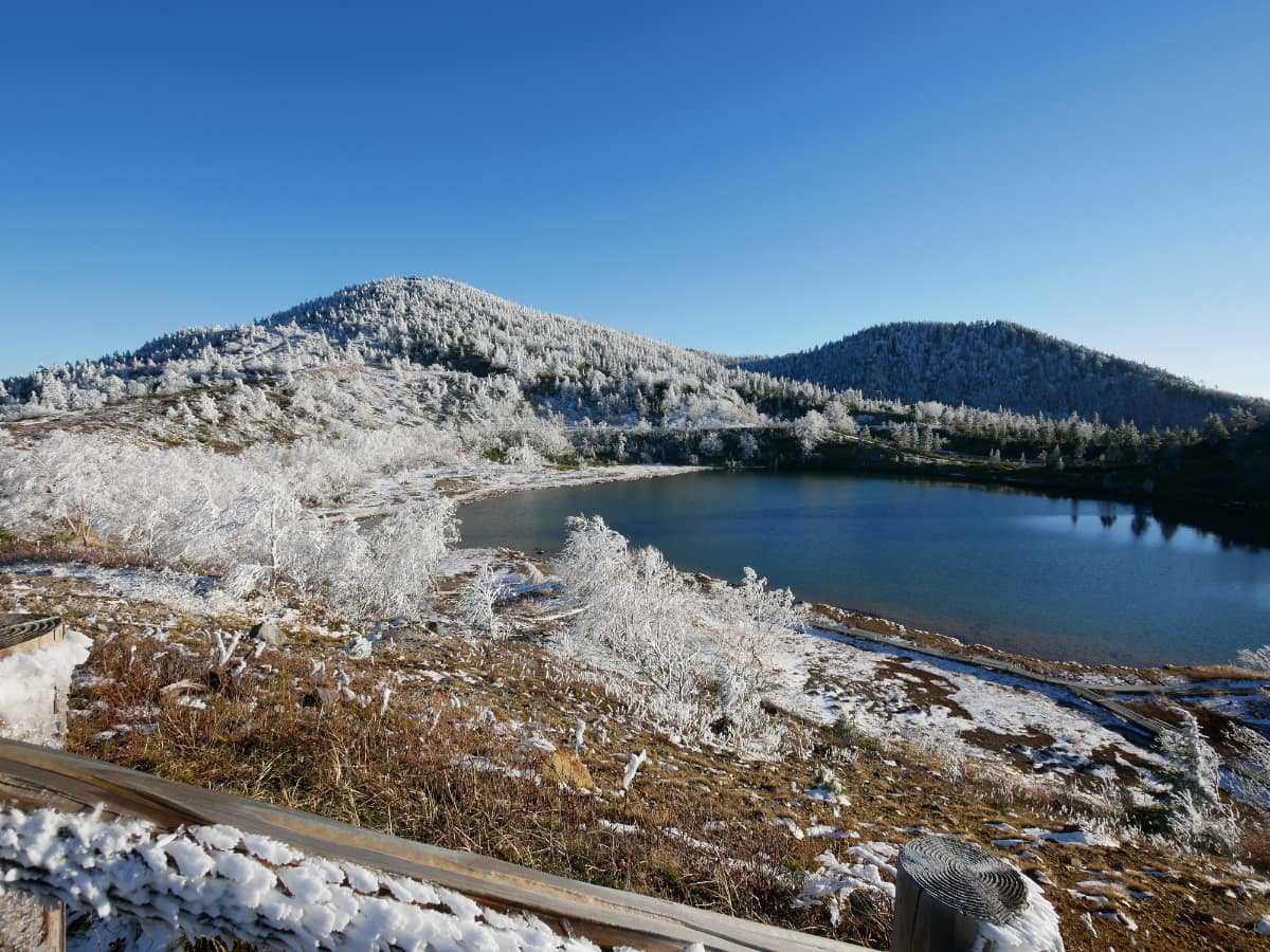 「白根山麗(しらねさんれい)」にある火口湖の一つである「弓池(ゆみいけ)」は、周囲を湿地帯で囲まれ、ワタスゲやモウセンゴケなど湿生植物の宝庫になっています。驚きなのは、弓池の湖面が氷結すると「スノーシュー」で渡ることができるようになること。スノーシューは、雪の上を歩くための小さなスキー板のような道具で、特別な技術はいらないため子供でも楽しめます。ここでしかできない貴重な体験スポットです。