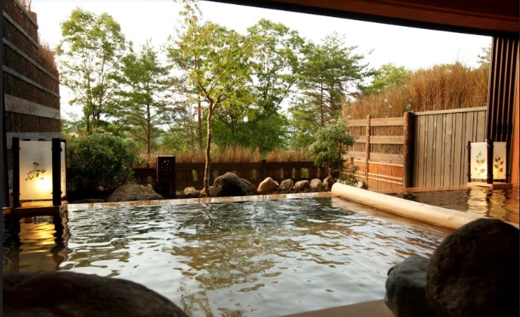 「望雲(ぼううん)」は文人にも愛された創業400年の老舗宿で、草津温泉の2つの源泉を引いた6つのお風呂としゃくなげ庭園が自慢です。冬には「万代の湯(ばんだいのゆ)」の開放的な窓からも雪景色を堪能できますが、一番のおすすめは、源泉かけ流しの露天風呂。しっぽりと素敵な雪見風呂が楽しめます。