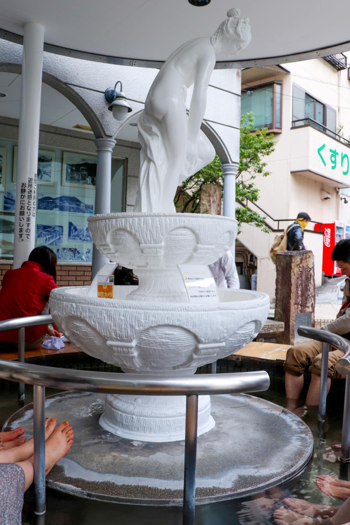 その中でも、運気があがるといわれているさるぼぼ七福神社の「さるぼぼ黄金足湯」や白いビーナス像を眺めながら輪になって入浴できる「ビーナスの足湯」などが人気です。