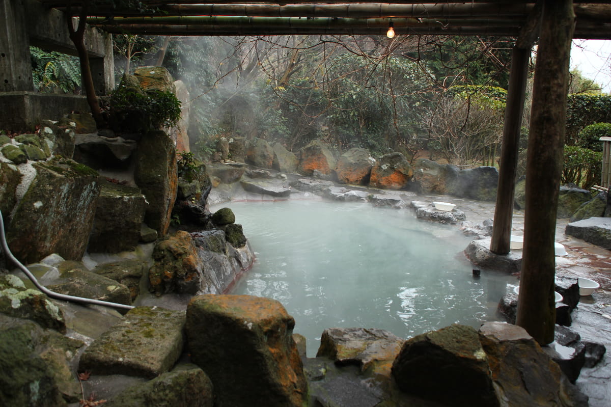 濁り湯・透明湯・露天風呂があり浴槽そのものが源泉であることが特徴の温泉です。