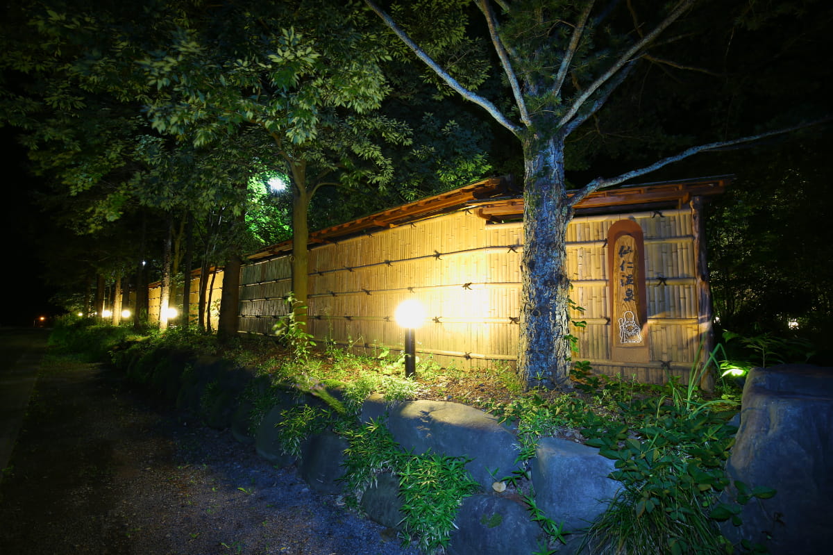長野県にある「仙仁温泉 花仙庵 岩の湯」の名物は洞窟風呂。門をくぐれば別世界に迷い込んだような気分になります。