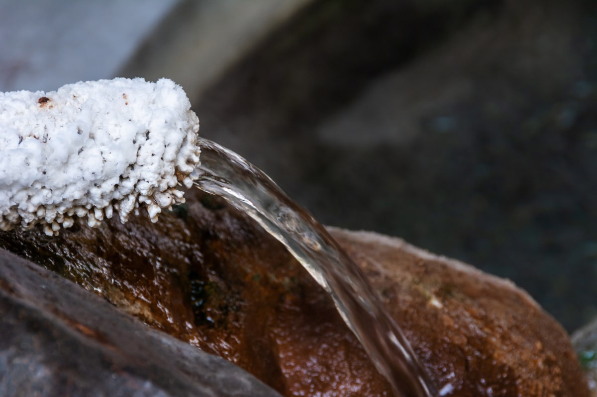 「湯の花」とは、地中から湧き出した温泉が冷やされたり、蒸発したり、または酸化したりすることによって温泉に含まれる成分や物質の固形化が進んだ結果できたものです。
