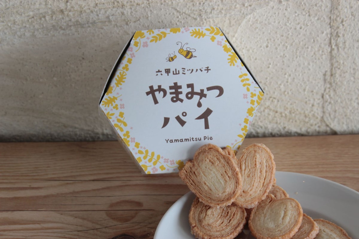 六甲山で採れたハチミツ「やまみつ」を使用して焼き上げた、サクサク食感のパイ(591円)。ほどよい甘さとやまみつの香り豊かな風味が口いっぱいに広がる人気のお菓子です。