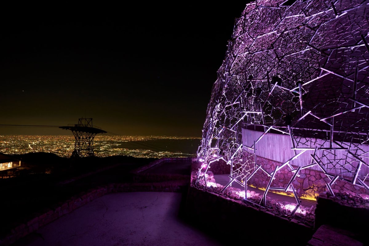 夜になると展望台は、最新のLED照明を用いた限りなく自然光に近い光で、内側から照らされます。新緑や紅葉、樹氷など、季節を表現するライティングを、神戸の1,000万ドルの夜景とともに心ゆくまで堪能してください。