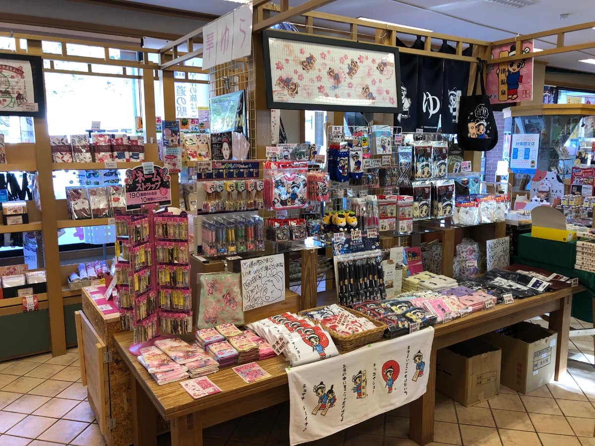 「ロマンティックショップ」には、草津銘菓に加え、草津の観光大使を務める「湯もみちゃん」のグッズがずらり。