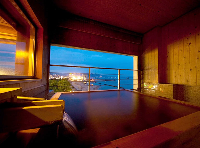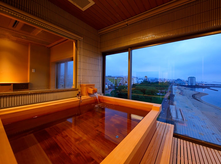 ◆木村さん:海に面したお部屋のタイプに合わせて、天然温泉掛け流しの「客室露天風呂」「客室展望風呂」の2タイプをご用意しています。