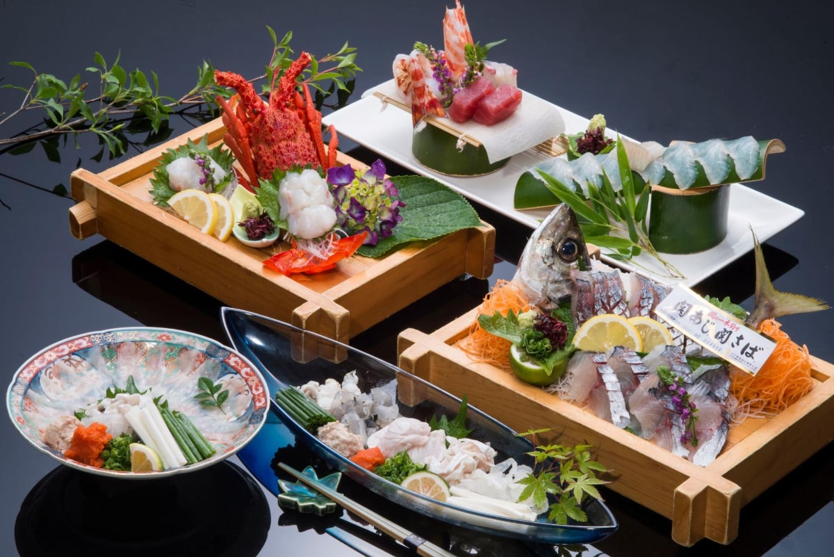 通年ご用意している関アジ、関サバ、フグなどのほか、春から夏にかけては城下カレイのお刺身、冬にはフグ会席をご堪能いただけます。