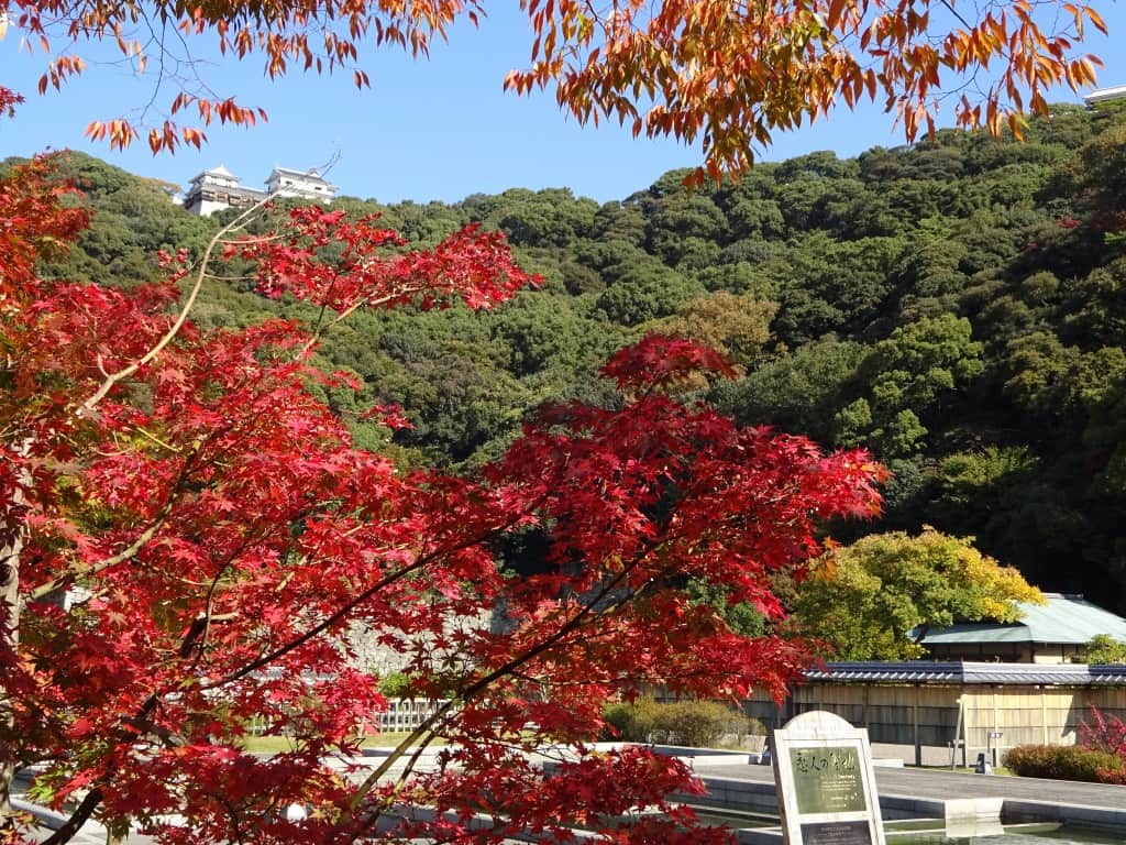 21棟の建造物が重要文化財に指定されていて、見どころが盛り沢山です。秋のシーズンは、天守と紅葉のコントラストが圧巻。