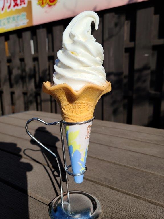 店のいち押しは、「手づくりジャージーソフト」(350円)。地元のジャージー牛乳で作ったソフトクリームは、とても濃厚でコクがあります。