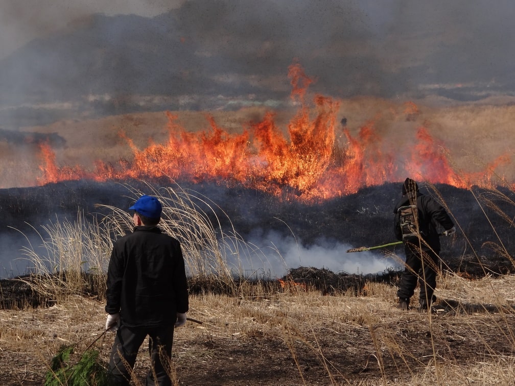 野焼きをすることで、前の年の枯れ草を焼却したり、草原が森林に変わってしまわないよう低木類を抑圧したりして、牛馬が好むネザサなどの新しい草の芽立ちを助けることができます。