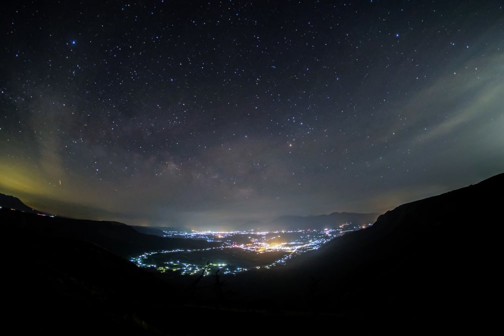 街の光と夜空の星がキラキラ輝く大観峰からの夜の眺望も、ロマンティックで素敵です。