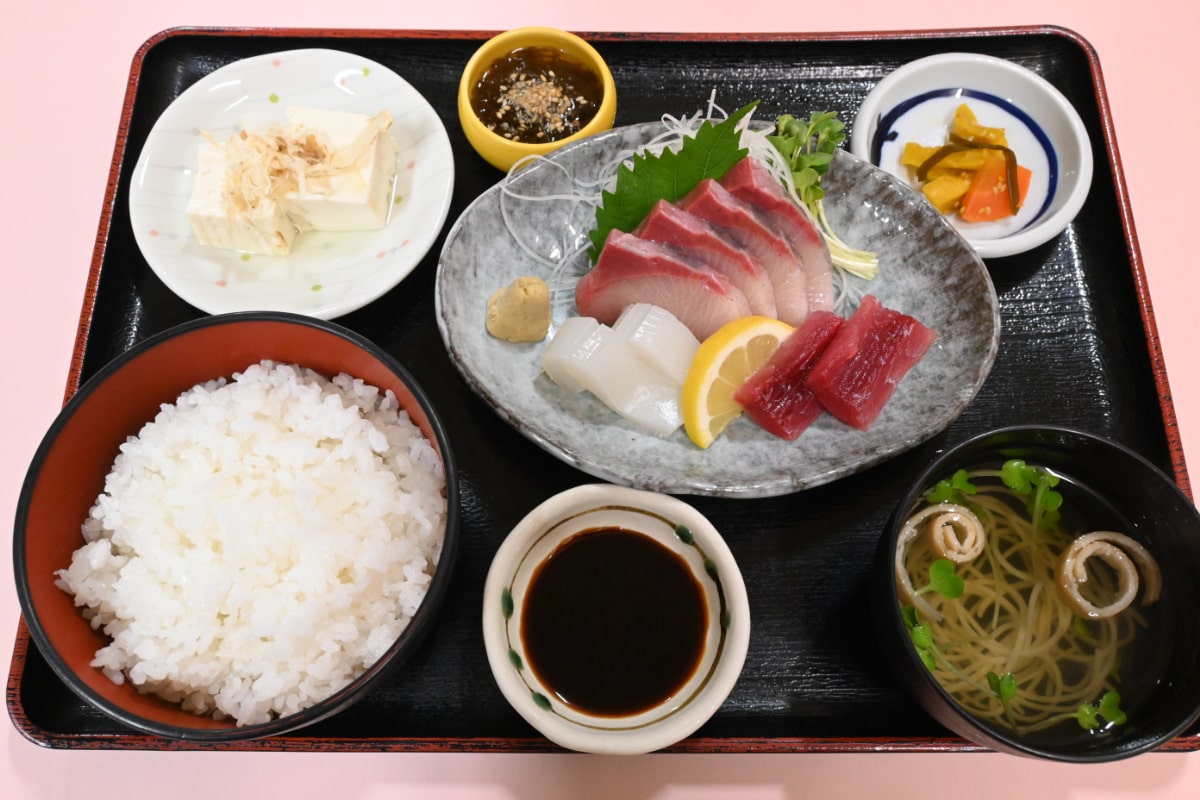 ランチメニューは3種類。人気の「Aランチ」(950円)には、ハマチ、鯛、マグロなど、その時々に仕入れた旬の魚がふんだんに使われており、リーズナブルながら大満足の御膳です。