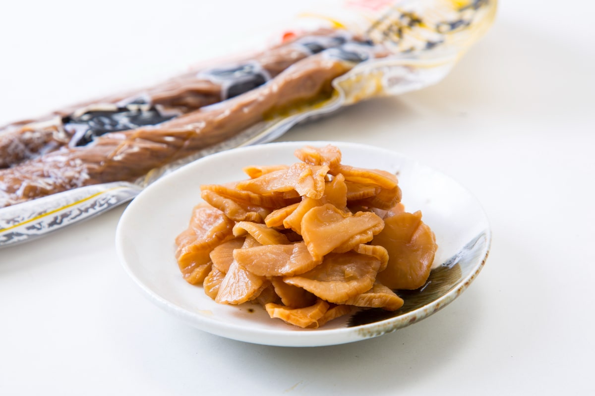 保存料・着色料も一切使用なし。薄く刻んで三杯酢や黒酢で味付けしたものもあり、ご飯のお供はもちろん、パスタやチャーハンとも相性抜群です。