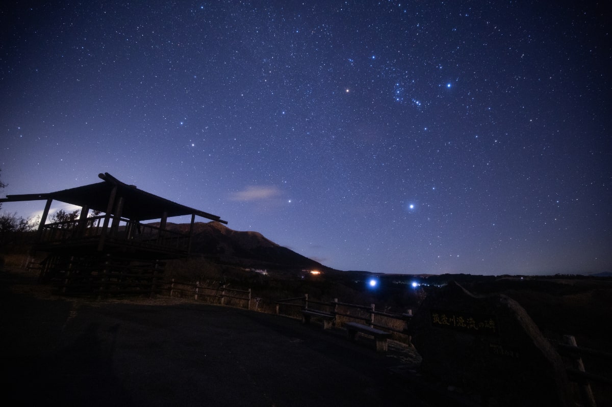 展望所には24時間無料で出入りが可能です。夜に訪れれば、満天の星と温泉街の灯りを遠くに臨むことができ、昼間とはまた違った景観を楽しむことができます。