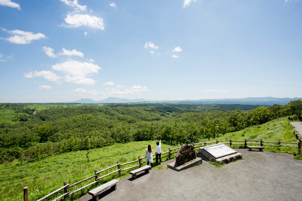 東には九重(くじゅう)連山や黒川温泉、南には阿蘇山と阿蘇くじゅう国立公園の絶景が堪能でき、写真撮影にも絶好の場所となっています。二人で鳴らすと永遠の愛を誓える鐘があることから「恋人たちの丘」とも呼ばれています。