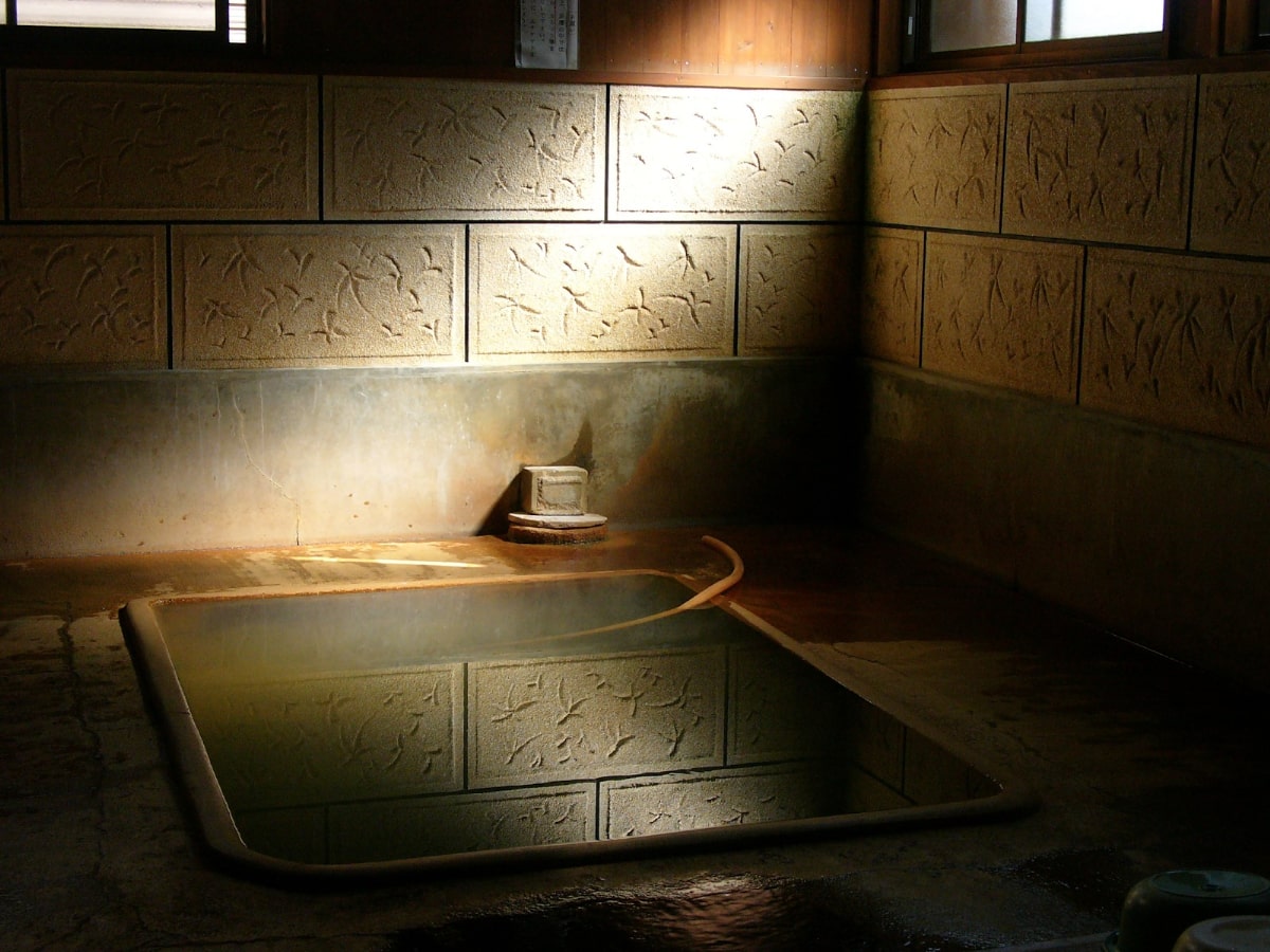 内湯が男女1つずつのシンプルな造りで、お湯は熱め。「鰻温泉」の湯は単純硫黄泉で、皮膚病・神経痛・病後回復などの効能があります。