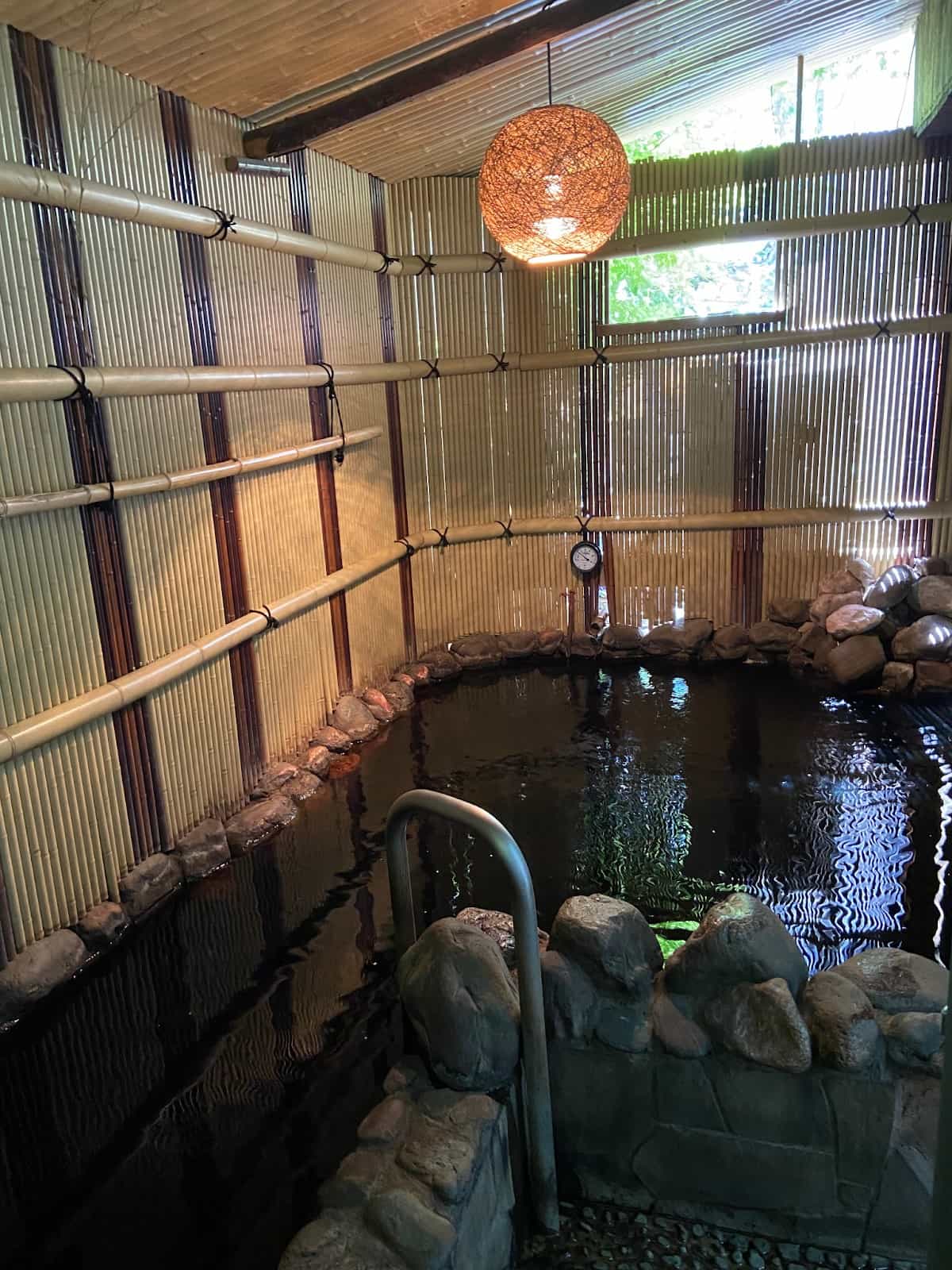 黒湯の露天風呂が人気の「照の湯」。